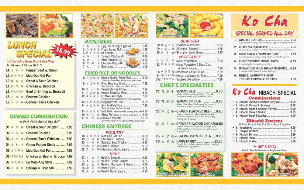 Welcome to Ko Cha Asian Restaurant, a hidden gem located in the heart of Charleston, SC. This food court spot offers a delightful journey through Asian cuisine, featuring a menu that promises to tantalize your taste buds.